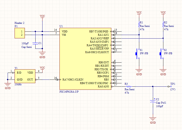 Der PIC16F628 war erstmal nicht in der "Miscellaneous Devices" Library enthalten, aber man konnte die Microchip-Library aus der umfangreichen Online-Datenbank, die knapp 100.000 Teile von über 1.000 Herstellern enthält, kostenlos nachinstallieren. Damit war dann die Schaltung recht schnell gezeichnet: