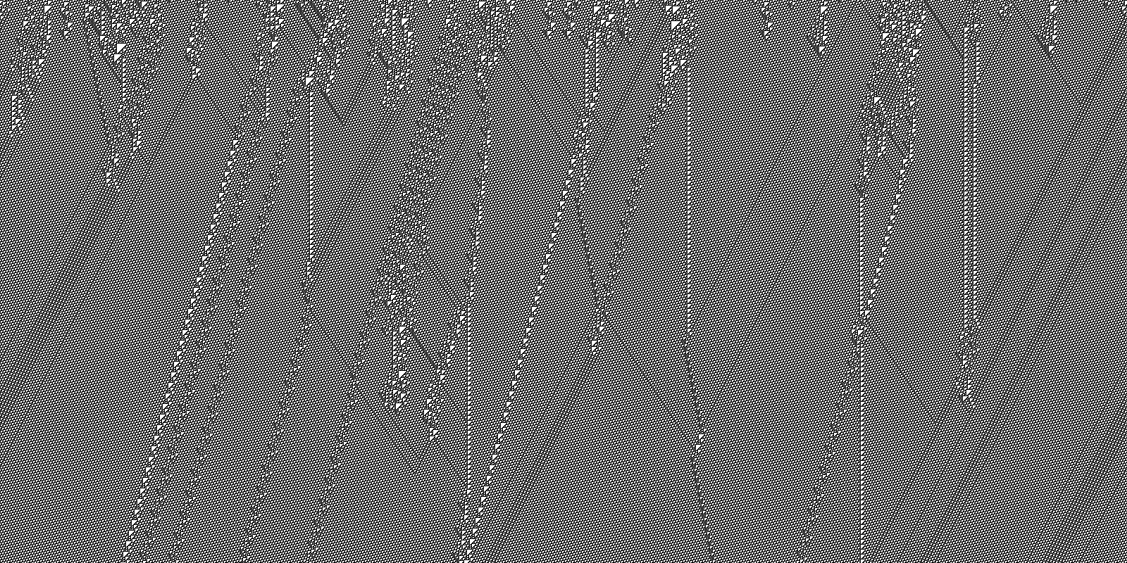 I think it should be possible to set-up an easier system for building a computer, like the turing machine. For this I have programmes a simple program, which calculates a Rule 110, with special initial conditions and a finite width: The cells are set to 11111000100110, concatenated over the whole width and with random cell-changes to 0 or 1 at a low rate. And the automaton wraps at the end to the start and vice-versa, because I think then it is easier to set-up the input and parse the output from a calculation.