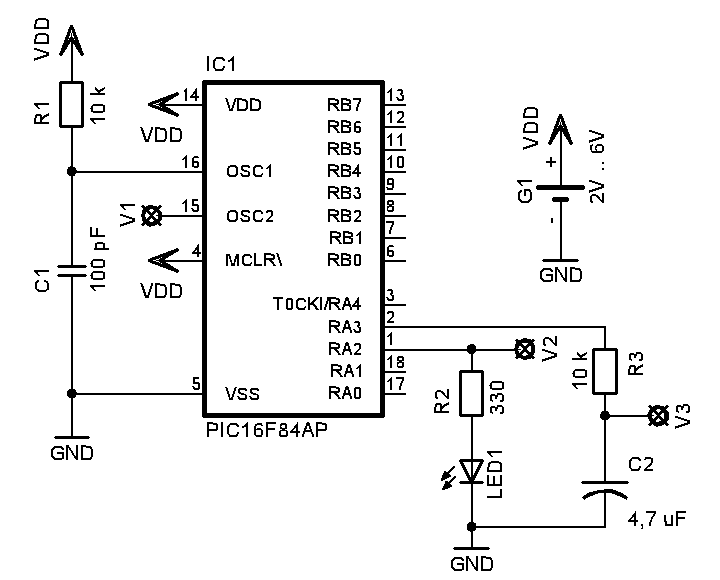 ein preiswerterer PIC der 12-Reihe (ca. 1 Euro) verwendet werden. Die Blink-Frequenz