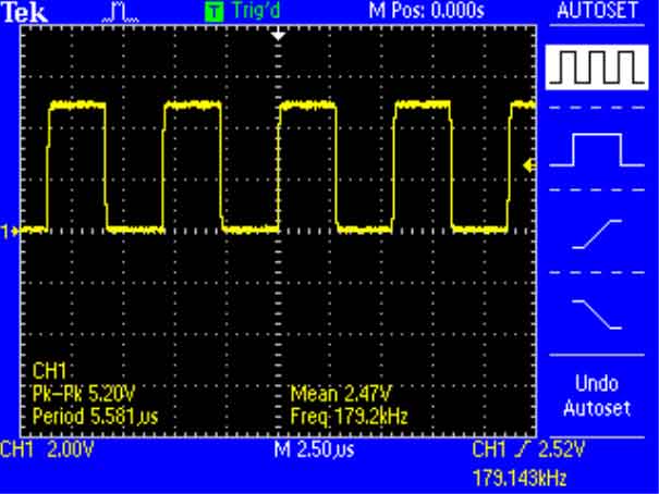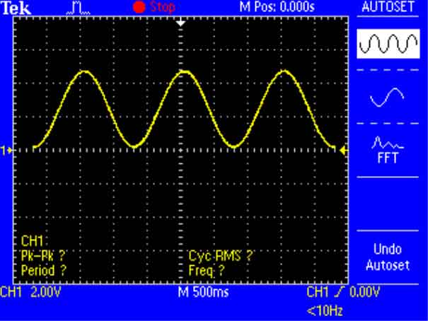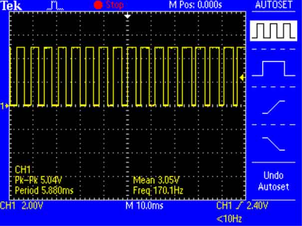 Oszilloskopbild vom Punkt V3 (Zeiteinteilung pro Kästchen: 500 ms):