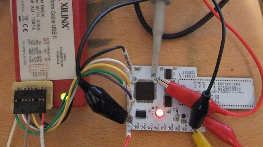 The PCB arrived, I've soldered the CPLD and uploaded a blinking program:
