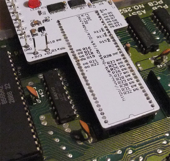 When programmed in a CPLD, it can replace the 28 pin PLA 906114, e.g. used in C64C models with PCB assembly number 250466.