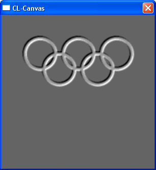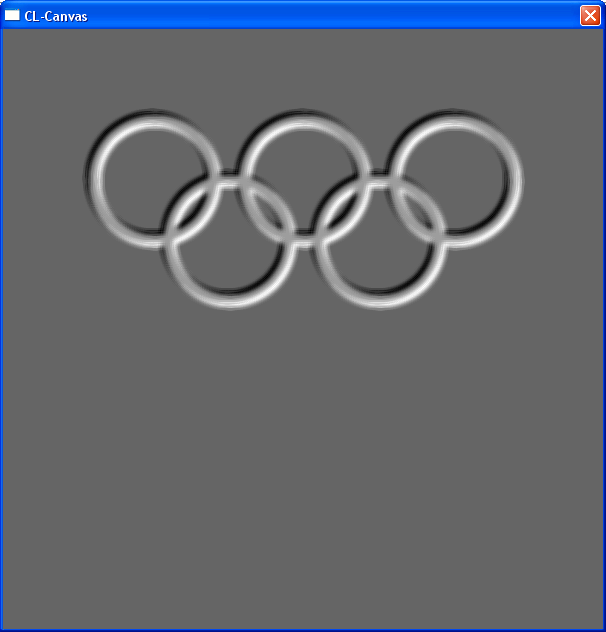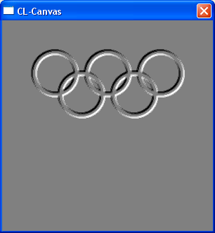 (defparameter embossed-rings (emboss :function olympic-bw :sample-radius 0.01)) (paint embossed-rings)