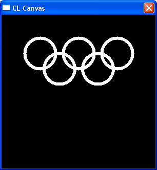 (defparameter c2 (circle :x0 0.0 :y0 -0.5 :radius 0.2 :line-width 0.02)) (defparameter c3 (circle :x0 0.5 :y0 -0.5 :radius 0.2 :line-width 0.02)) (defparameter c4 (circle :x0 -0.25 :y0 -0.3 :radius 0.2 :line-width 0.02)) (defparameter c5 (circle :x0 0.25 :y0 -0.3 :radius 0.2 :line-width 0.02)) (defparameter olympic (add c1 c2 c3 c4 c5)) (paint olympic)