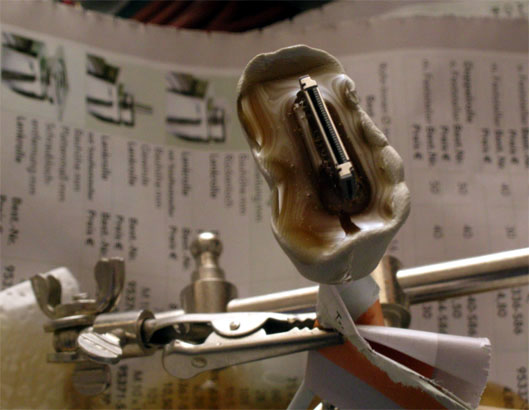 Mit einem Silikon (Elastosil M4440, alternatives Produkt) kann man auch komplexere Dinge abformen, sogar mit Hinterschneidungen: